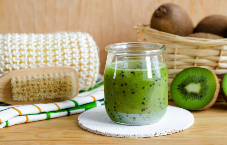 Kiwi blendujemy, dodajemy cukier, oliwę – dokładnie mieszamy. Okrężnymi ruchami wmasowujemy w skórę (omijamy okolice oczu) przez kilka minut, po czym dokładnie spłukujemy.