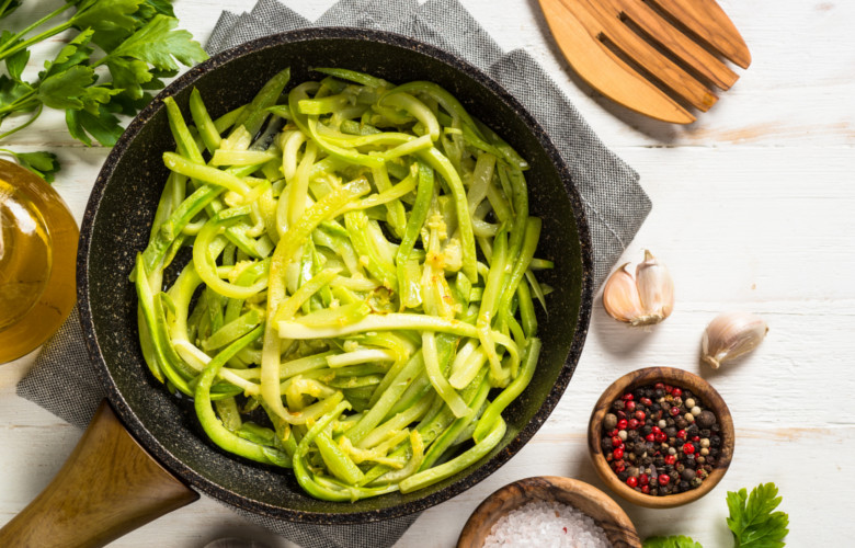 Cukinie musimy przepuścić przez tzw. tarkę spiralną – uzyskamy wówczas idealne cienkie paseczki, przypominające makaron. Na oliwie z oliwek należy zeszklić pokrojoną w kostkę cebulę i czosnek przeciśnięty przez praskę. Następnie na patelnię dodajemy cukinię, podsmażamy do miękkości, doprawiamy solą i pieprzem. Wlewamy śmietankę, dodajemy starty parmezan, mieszamy i chwilę gotujemy. Do naszego zielonego spaghetti można dodać także podsmażony boczek, pokrojony w kosteczkę.