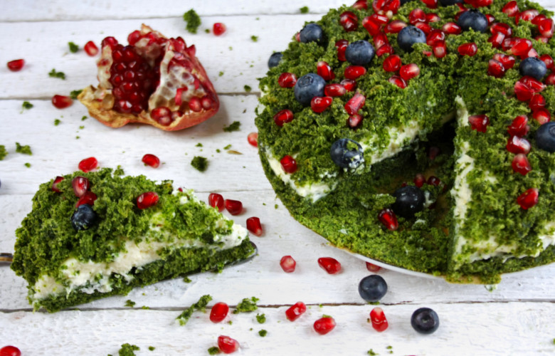 Szpinak rozmrażamy, odsączamy i rozdrabniamy w blenderze. Mąkę przesiewamy przez sito i mieszamy z proszkiem do pieczenia i sodą. Jajka ubijamy z cukrem na puszystą pianę. Następnie powoli wlewamy olej i mieszamy szpatułką. Dodajemy szpinak, aromat, mieszamy. W kilku partiach wsypujemy mąkę, delikatnie mieszamy szpatułką. Ciasto przekładamy do tortownicy - wstawiamy do piekarnika nagrzanego do 170 st. C i pieczemy przez około godzinę.